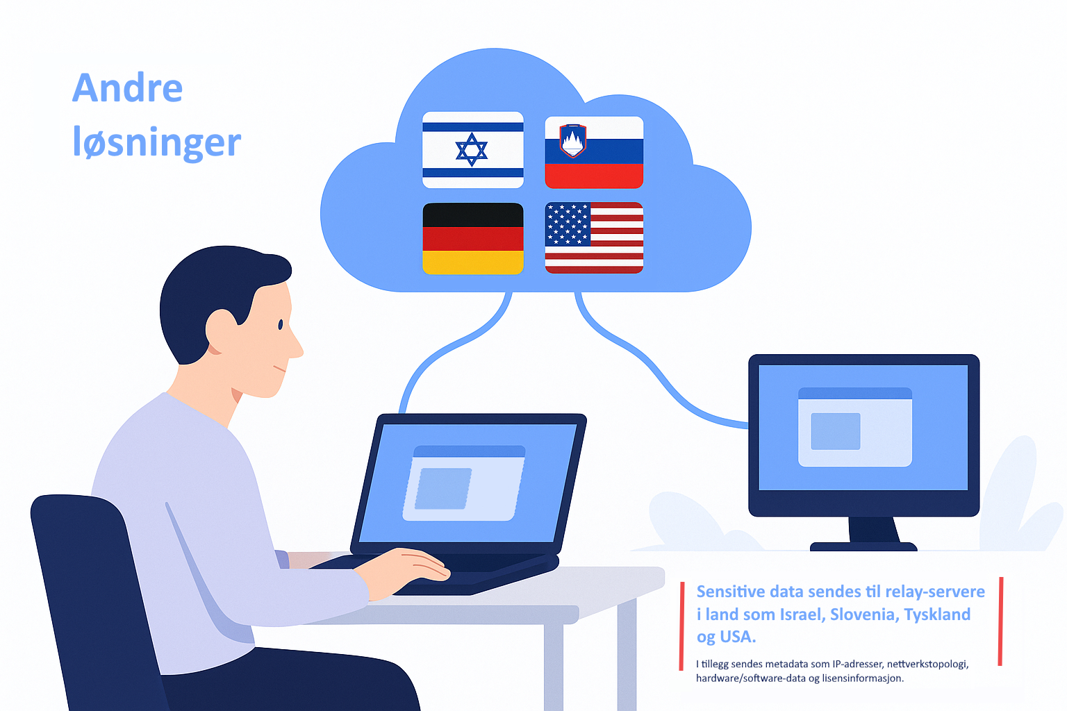 uten risiko for lekkasje av person- og organisasjonssensitiv informasjon til eksterne servere eller utenlandske aktører.